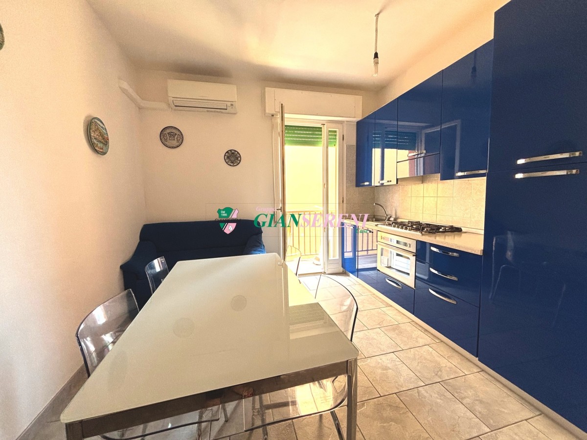 Internamente si compone di cucina con terrazzino con vista mare laterale, camera matrimoniale con terrazzino che affaccia su corso italia, cameretta e bagno finestrato con doccia.
