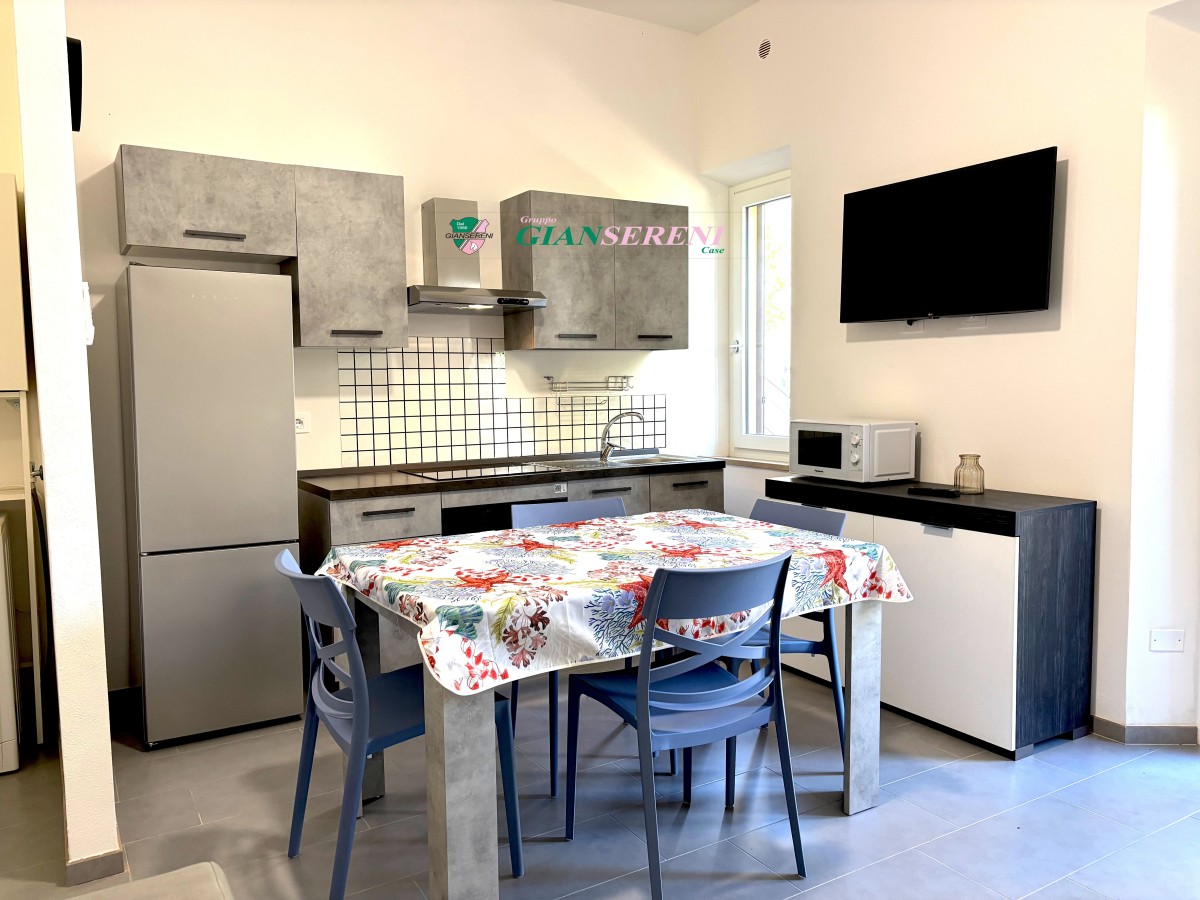 DOTAZIONI: piano cottura ad induzione, frigorifero con congelatore, forno, forno a microonde, TV, lavatrice, aria climatizzata, 1 POSTO AUTO.