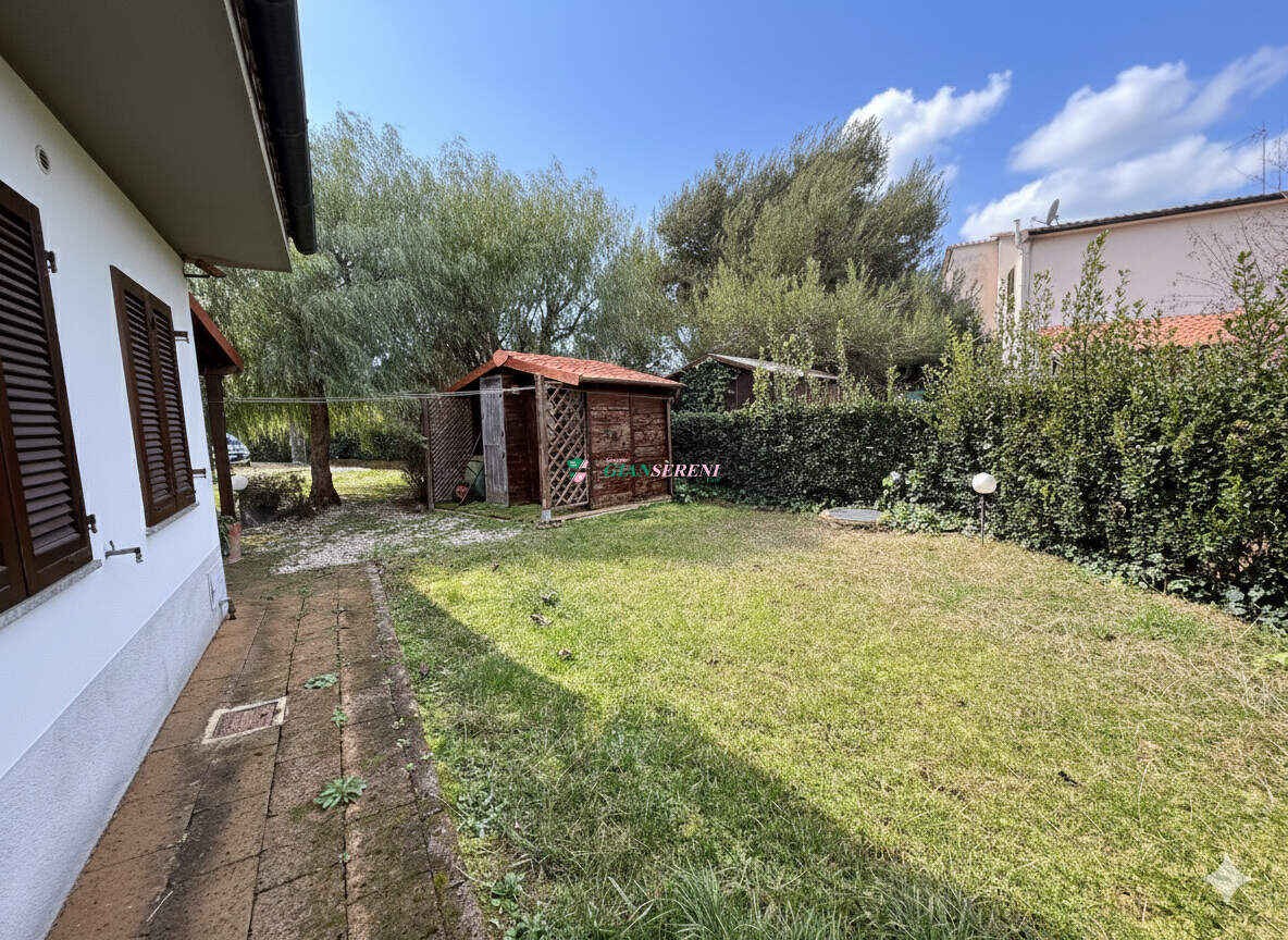 un giardino privato di circa 1.000 mq, completamente recintato e delimitato da siepi che garantiscono privacy, e un ampio portico che costeggia la zona giorno, perfetto per vivere l’esterno in ogni stagione, pranzi all’aperto e momenti di relax.