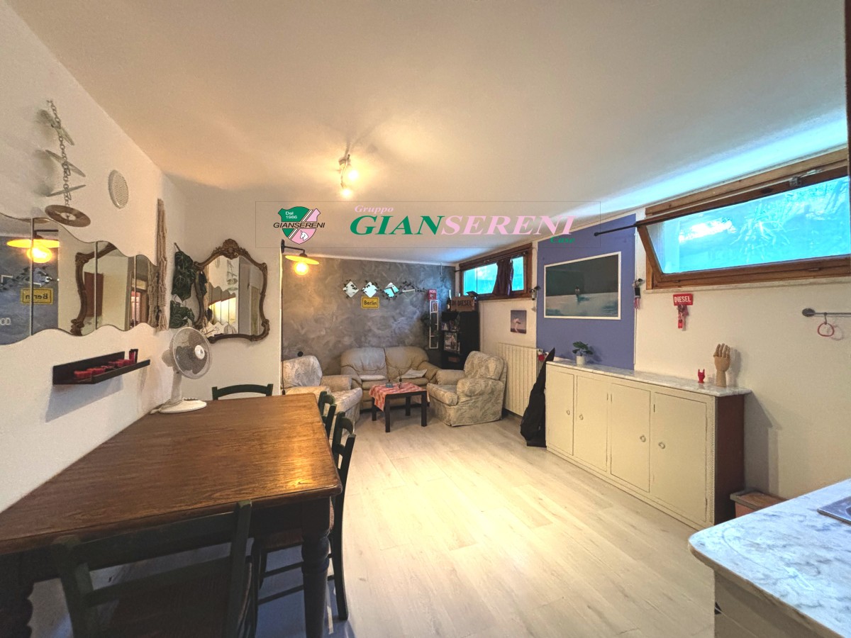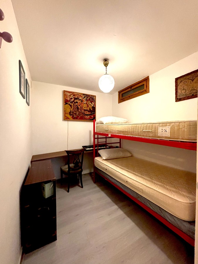 Al piano seminterrato appartamento di circa 60 mq composto da angolo cottura con soggiorno, camera, cameretta, bagno e locale multiuso.