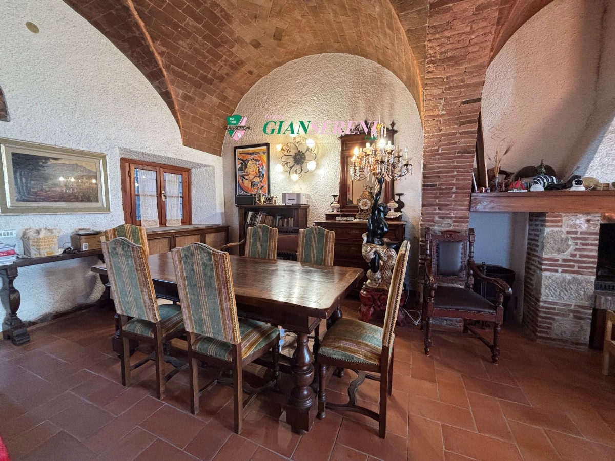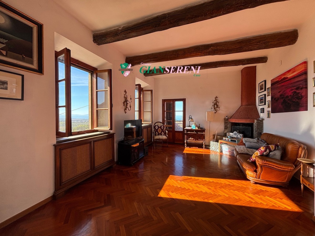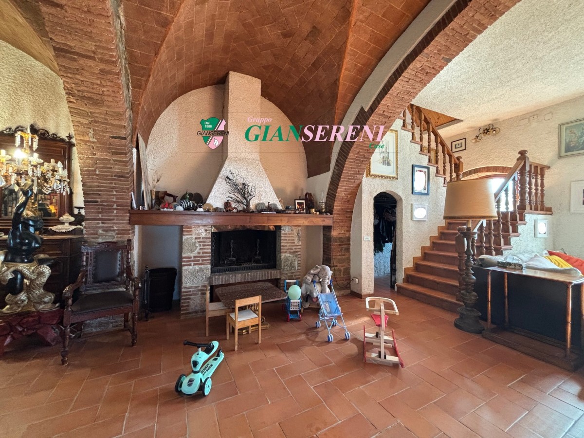 L’immobile al suo interno si distribuisce su due livelli. Al piano terreno troviamo un grandissimo salone di quasi 90 mq con tipico camino, una cucina abitabile ed un bagno di servizio oltre locale tecnico, salendo una bellissima e imponente scala si raggiunge il piano superiore dotato di camera padronale con grande terrazza privata dalla quale si scorge la visuale più bella in assoluto sul panorama circostante, ulteriori tre camere, uno studio ed il bagno.