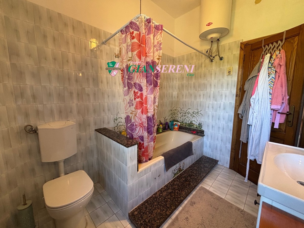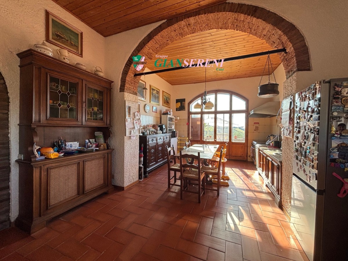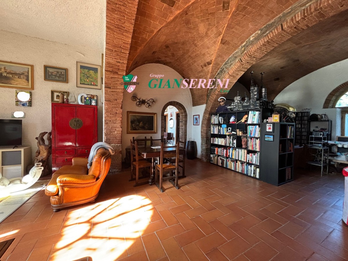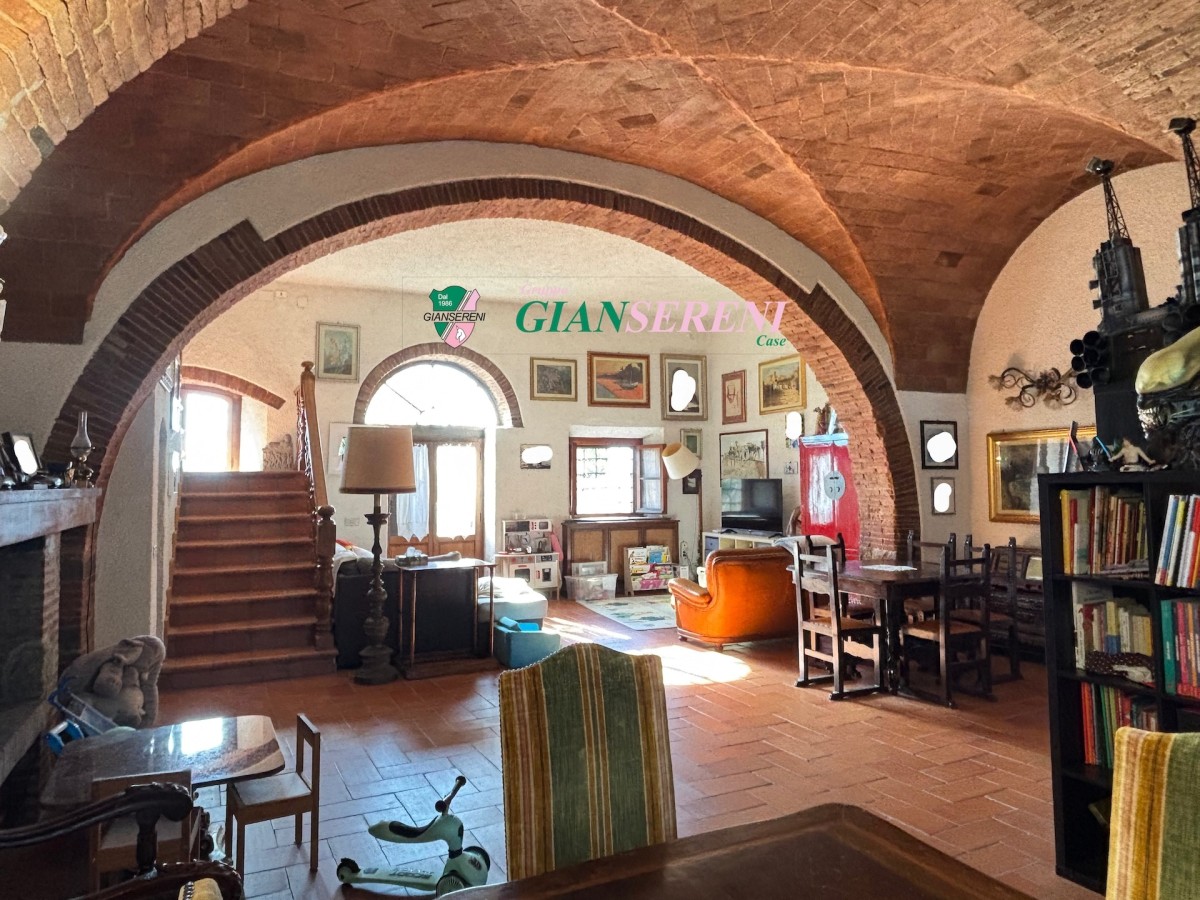 L’immobile al suo interno si distribuisce su due livelli. Al piano terreno troviamo un grandissimo salone di quasi 90 mq con tipico camino, una cucina abitabile ed un bagno di servizio oltre locale tecnico, salendo una bellissima e imponente scala si raggiunge il piano superiore dotato di camera padronale con grande terrazza privata dalla quale si scorge la visuale più bella in assoluto sul panorama circostante, ulteriori tre camere, uno studio ed il bagno.