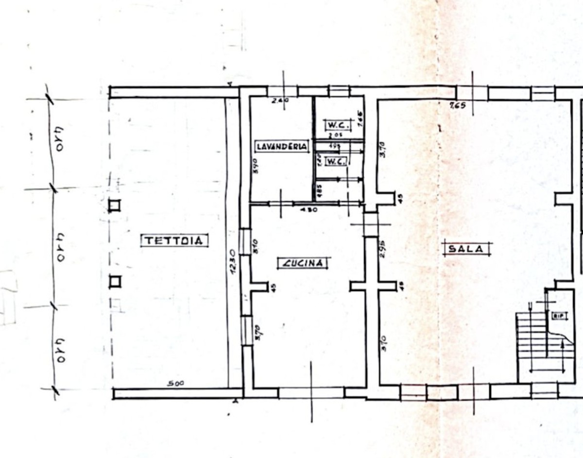 Un’altra scala interna porta a 3 locali sottotetto dotati di lucernari per altri 70 mq circa.