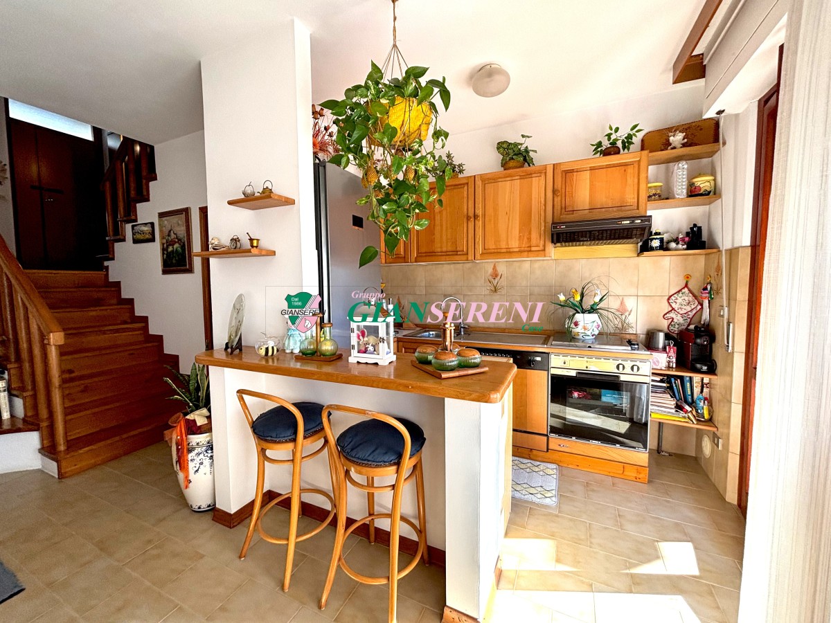 Nella parte panoramica di San Vincenzo, in un contesto residenziale di villette a schiera, vendiamo immobile sviluppato su 3 livelli. Accendendo dal cancellino privato si trova una prima resede esterna, una volta entrati invece l'abitazione si sviluppa in ingresso e zona salotto, cucina con ampia vetrata con accesso sull'altra resede esterna, salendo si trovano poi due camere con una gradevole vista mare ed il bagno principale.