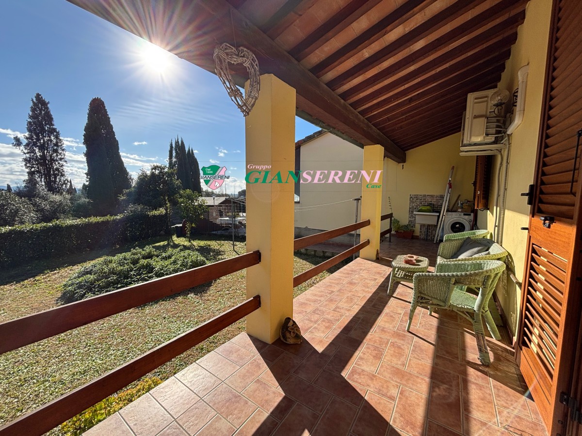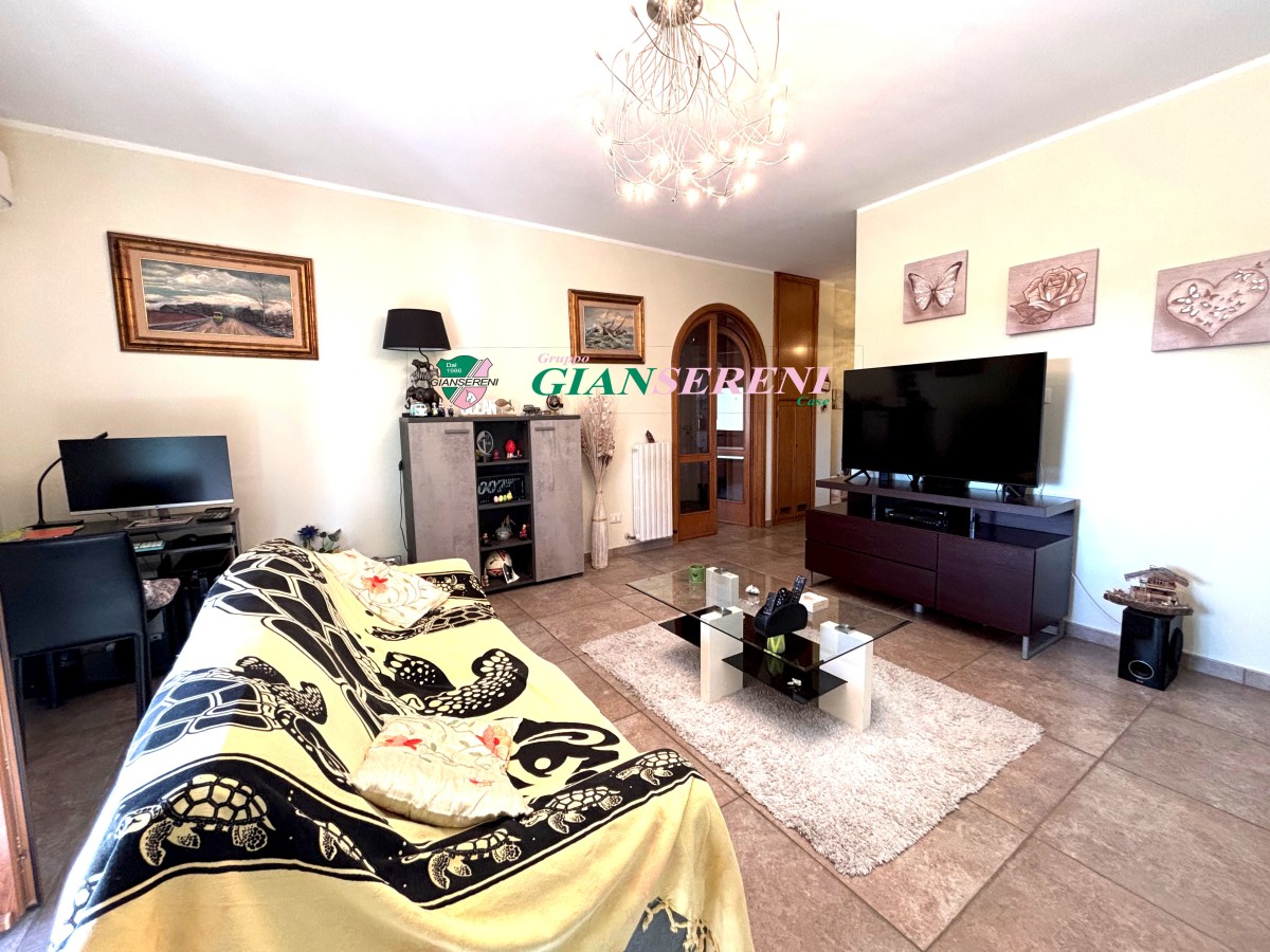Esternamente abbiamo un ampio giardino che circonda i tre lati dell'immobile, entrando invece nell'abitazione troviamo cucina abitabile, ampio soggiorno con accesso ad una terrazza abitabile di 19 mq collegata con il giardino, due camere matrimoniali, disimpegno e bagno per una superficie totale di circa 100 mq.